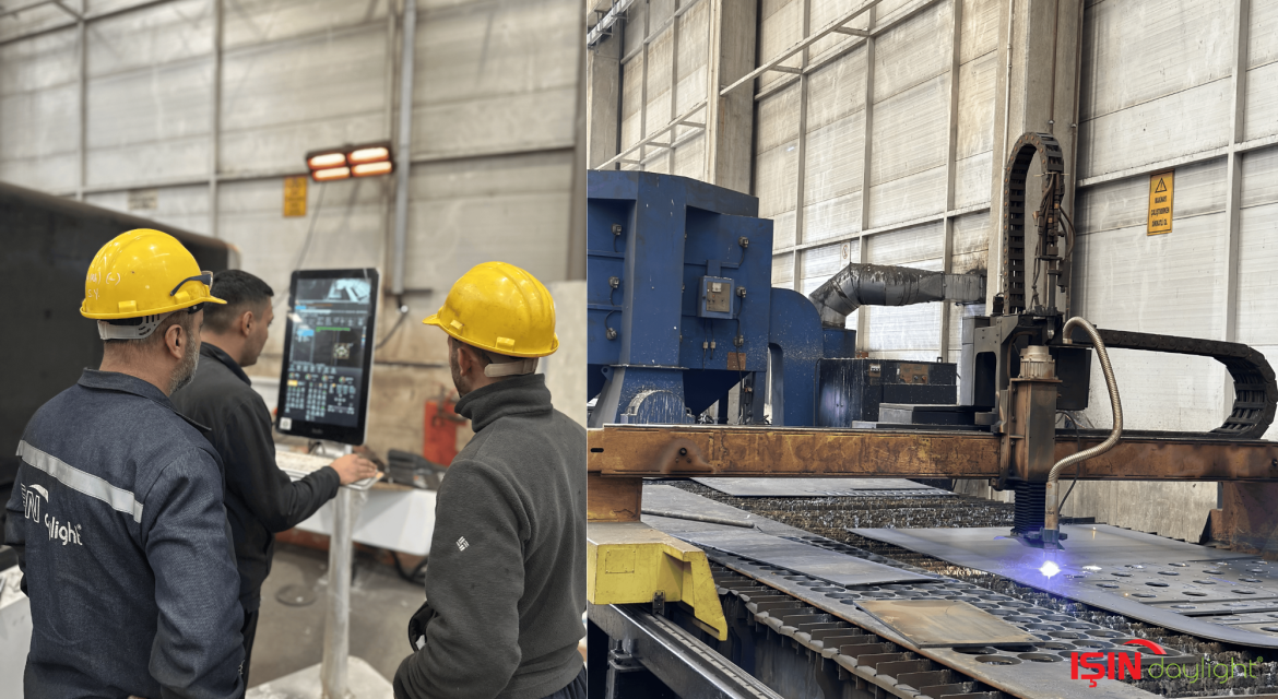 Işın Daylight olarak, üretim tesisimizi sürekli geliştiriyor; yeni makinelerle daha kaliteli, daha estetik ve daha güçlü aydınlatma direkleri üretmeye devam ediyoruz.